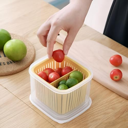 - It features a three in one design allowing vegetables and fruits to be cleaned, drained and kept fresh with a filterable basket and a partition; the basket doubles as a colander for washing produce, or for draining water after cooking pasta or potatoes, while the partition helps keep foods separated.
