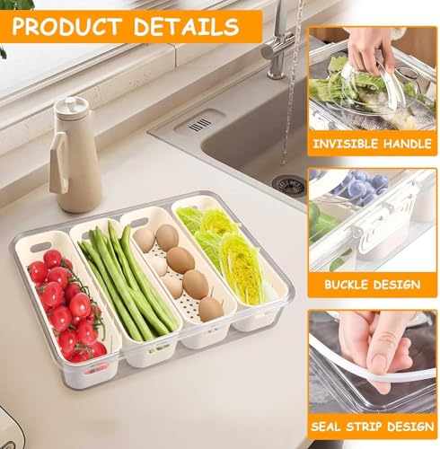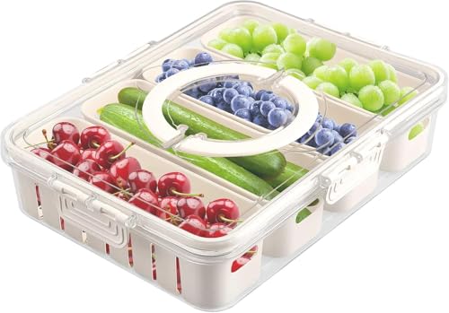 Generic - حاويات تخزين الطعام في الثلاجة مع اغطية ، صينية تقديم مقسمة قابلة للازالة مع غطاء، حاويات تخزين الطعام الطازج مع اغطية لسلطة الفاكهة (المنزل الذكي)