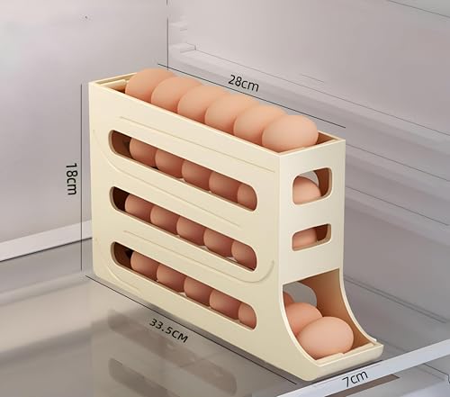 - With the capacity to hold approximately 30 eggs, this rolling egg tray dispenser is perfect for households that require ample storage. The 4-tier design allows for easy addition or removal of eggs, ensuring that you always have enough on hand for your cooking and baking needs. This generous storage capacity makes it an ideal choice for families or anyone who enjoys cooking with eggs regularly.