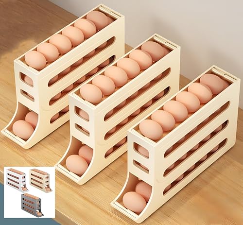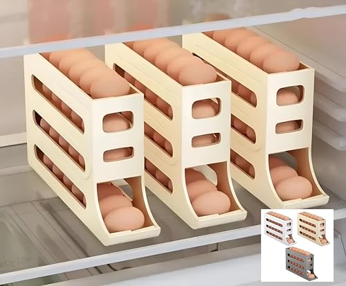 Generic - Fridge Organizer - Innovative 4-Layer Egg Dispenser Holder with Automatic Rolling, Perfect for Maximizing Space and Keeping Your Refrigerator Neat and Tidy (3 piece of color shown)