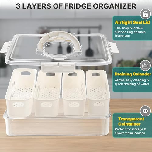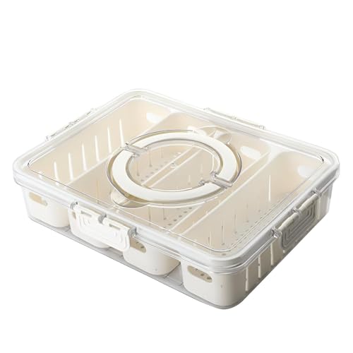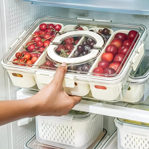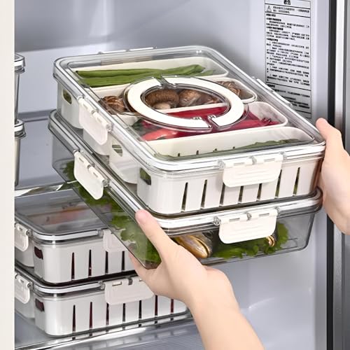 - This refrigerator storage solution features a 4-part partitioned design with airtight lids and handles, making it ideal for organizing and serving a variety of foods such as veggies, fruits, nuts, and snacks, while also functioning as a portable snack platter for outings or picnics, with the transparent lid allowing quick visual access to contents.