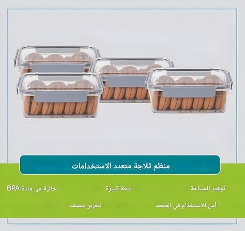 - علب تخزين بلاستيكية خالية من مادة بيسفينول أ وآمنة غذائيًا - علب محكمة الغلق للفريزر مصنوعة من البلاستيك المتين والخالي من مادة بيسفينول أ مما يجعل عمرها الافتراضي أطول. علب تخزين شفافة محكمة الغلق للتخزين في المطبخ توفر سهولة رؤية ما بداخلها ويمكنك بسهولة الحصول على ما تريد دون فتح كل العلب محكمة الغلق لتحصل على وجبة خفيفة. برطمانات تخزين للمطبخ موفرة للمساحة.