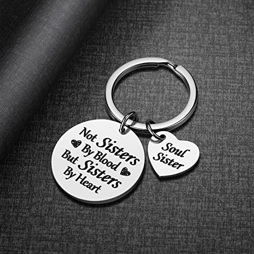 iWenSheng - هدايا الصداقة للنساء والأخت - سلسلة مفاتيح بعبارة Not Sister By Blood But Sisters By Heart هدايا عيد الميلاد لأفضل صديق مجوهرات، من ايوينشنج، بوليستر، أسود