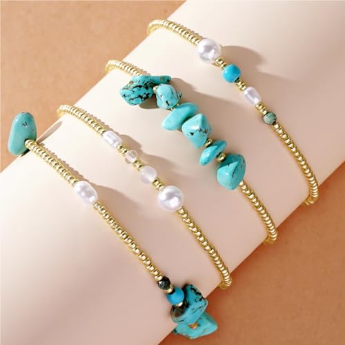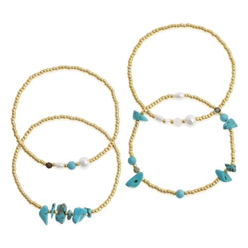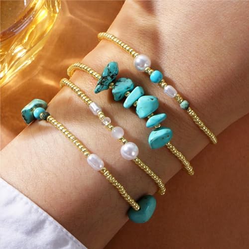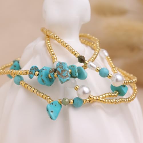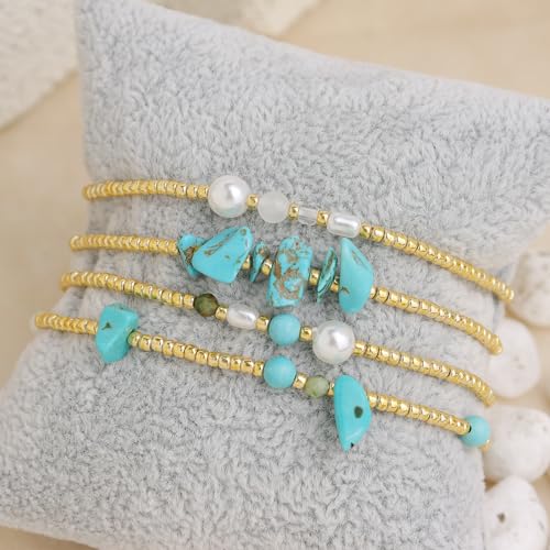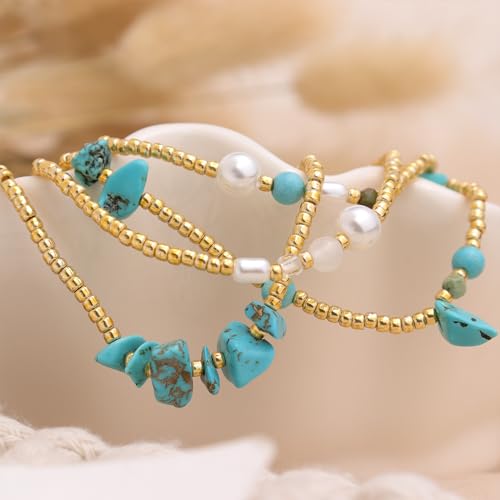 Frigotine - مجموعة اساور قابلة للتمدد بخرز ذهبي للنساء من فريجوتين، سوار بوهو مصنوع يدويا من الخرز الطبيعي قابل للتكديس، هدية مجوهرات صيفية