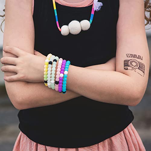 generic - FROG SAC 6 Beaded Bracelets for Girls, Silicone Bracelet for Kids, Cute Bead Bracelets, VSCO Girl Birthday Party Favors for Teens, Medium, Silicone, no gemstone