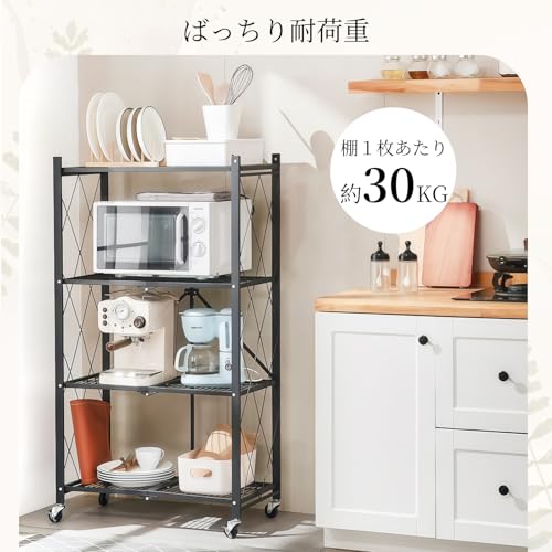 - (Strong and Stable) Made of durable steel material with rust resistance. Highly wear-resistant and oil-resistant for daily use and maintains its beauty. Sturdy construction allows you to load heavy objects with confidence. With no casters, it can hold up to 66.1 lbs (30 kg) per tier, making it useful not only for home, but also for offices and stores