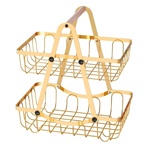 Generic - سلة فاكهة - تصميم معدني أنيق من طبقتين لتخزين الفواكه والخضروات بشكل أنيق، شديدة التحمل ومتعددة الاستخدامات لتنظيم المطبخ وتناول الطعام