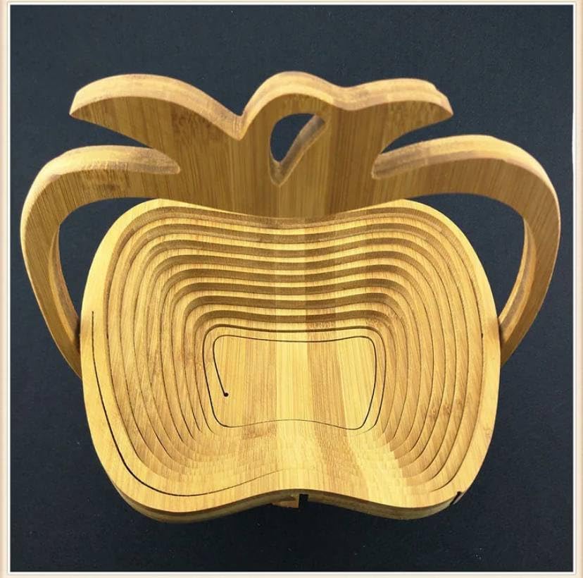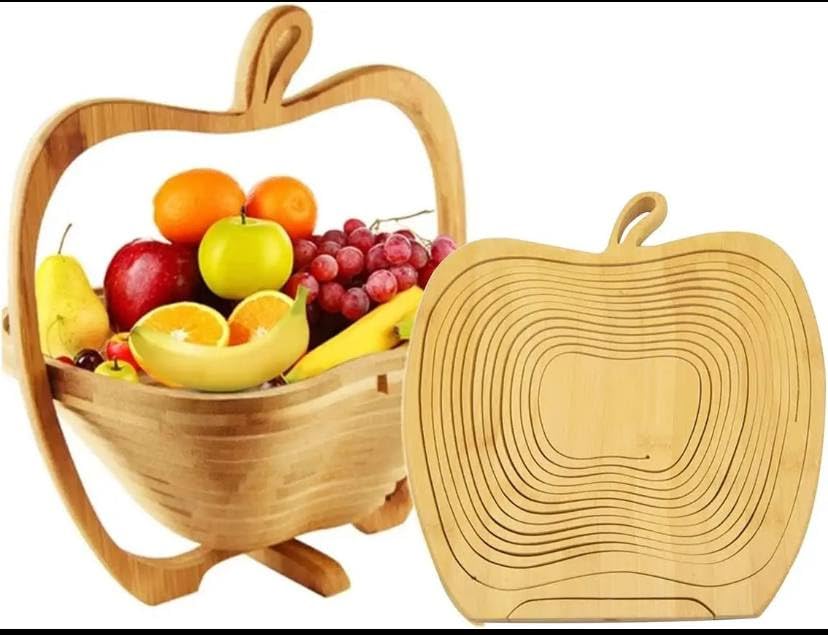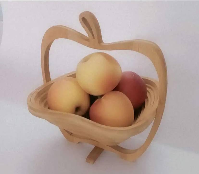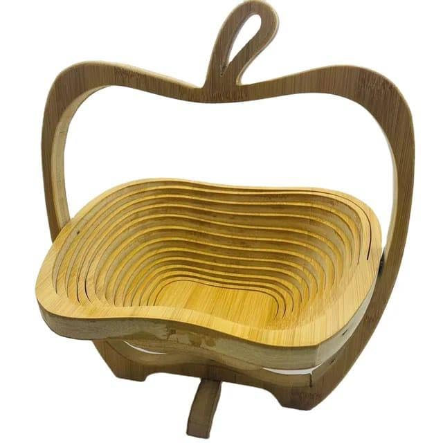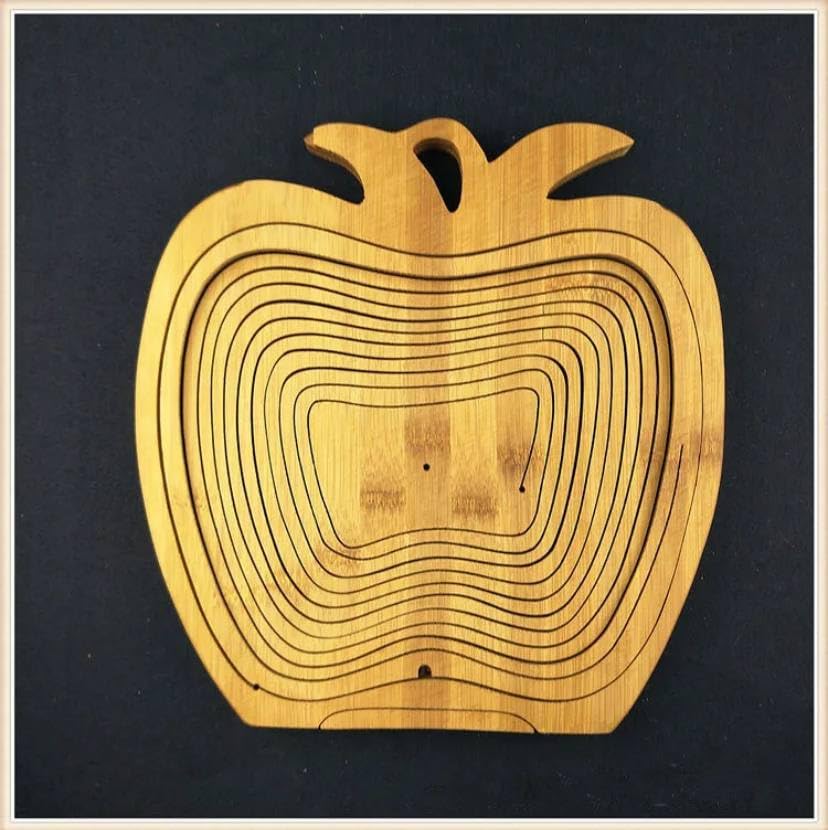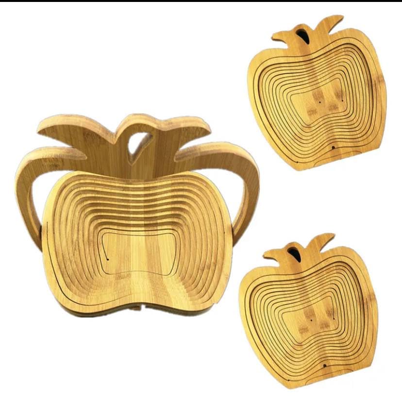 سلة فاكهة قابلة للطي على شكل تفاحة خشب مستورد وطبق تقديم متعدد الاستخدام للفاكهة، ديكور، تقديم عيش، اكسسوارات منزلية تصميم أنيق DR