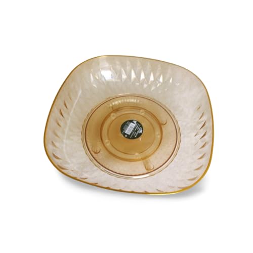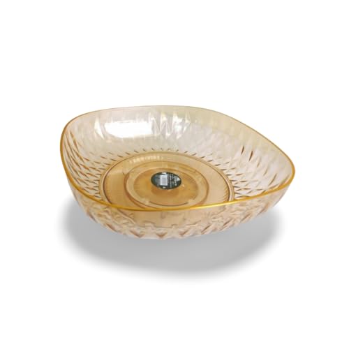Generic - طبق فاكهه زجاجي فاخر بحواف ذهبية - لون كهرماني أنيق