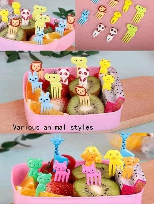 • مجموعة شوك فاكهة مبهجة وملونة تصميمها خاص بالأطفال.