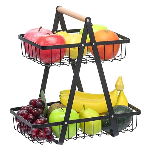 - This high-quality fruit bowl and vegetable rack is crafted from iron with a sleek black powder-coated finish, ensuring it is both rust-resistant and waterproof. The design features a convenient wooden handle, making it easy to transport your items from one place to another, whether you're moving fruits, vegetables, or other household essentials.