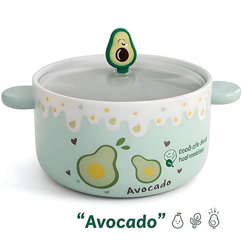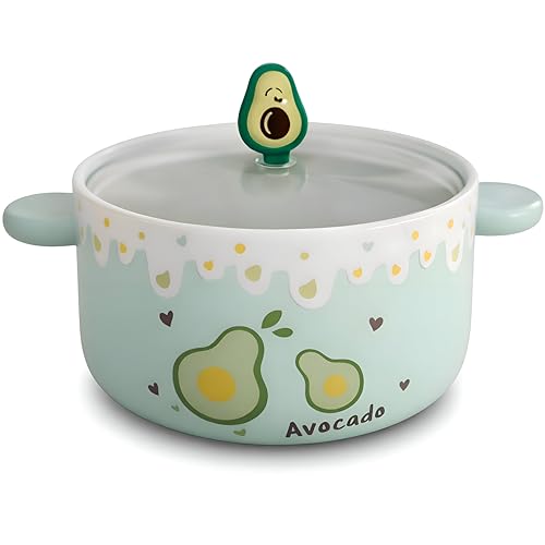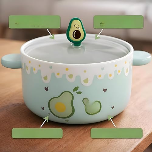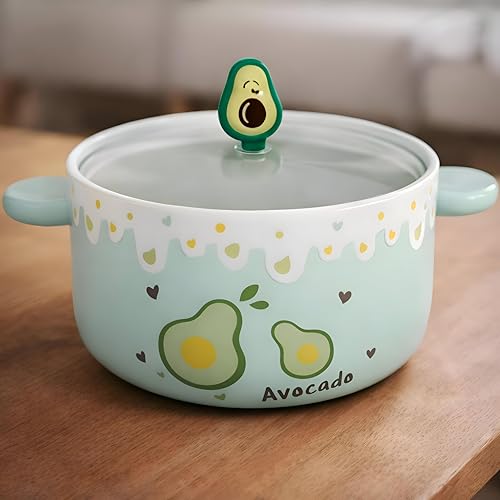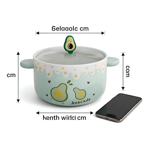 Generic - وعاء سيراميك لسلطة الفاكهة - وعاء عميق كبير مع غطاء زجاجي لتقديم الفواكه الطازجة أو النودلز او الوجبات الخفيفة مع الحفاظ على المحتويات طازجة. (الخيار 1)