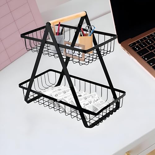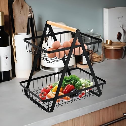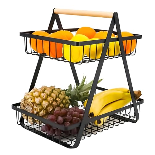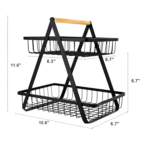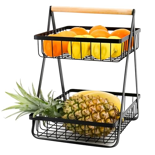 - ✪ PRACTICAL FRUIT BASKET: No assembly required, it is ready to use out of the box Two-level fruit basket to hold and display fruits and vegetables, the open wire design provides good airflow and keep your fruits and vegetables fresh.