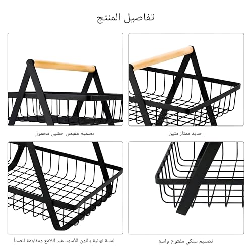 - ✪ STURDY & DURABLE: This black fruit basket holder is made of high quality iron with rustproof black powder coated rustproof, strong and durable to use. It is stable and non-slip on the working surface, wooden handle is easy to carry.