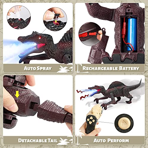 FRUSE - FRUSE Remote Control Dinosaur Toys for Boys,Electric RC Walking Robot Dinosaur w/Light Tracing,Spray Mist,LED Light,Roaring,Jurassic Dinosaur Toys,Present for Kids Girls Age 3 4 5 6 7 8