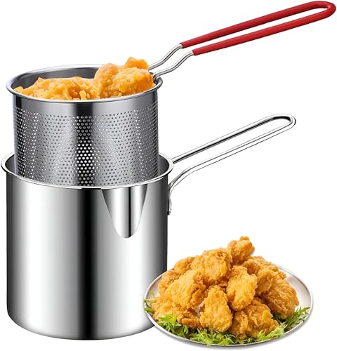 Generic - Fry Basket Set - Stainless steel drain basket ideal for frying potatoes, chicken, shrimp, fish, butter, sauces, and pasta with ease