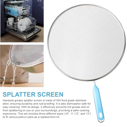 - Contains:You will receive 1pcs blue frying pan splatter guard with anti scalding handle,size is 29cm/11in,suitable for most sizes of pots to keep oil splatter contained