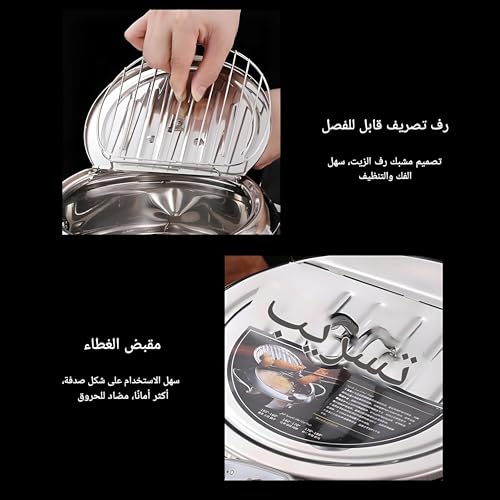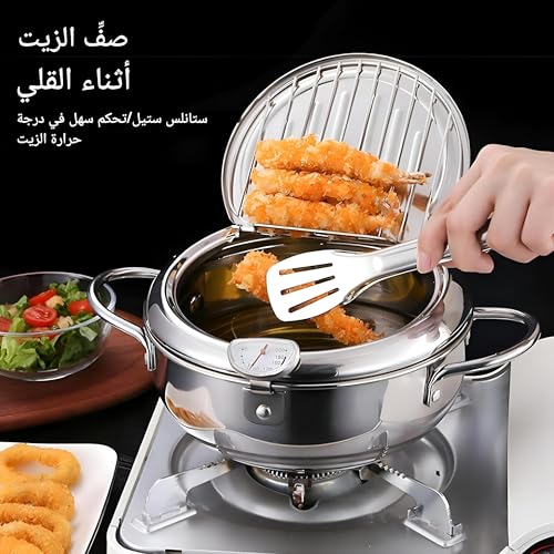 Generic - Frying pan - Stainless steel frying pan 2.2L with temperature measurement, oil filter shelf, spill -resistant cover, ideal for trim, frying and cooking