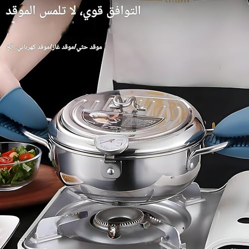 - This deep fryer pan is made from high-quality stainless steel, ensuring durable and safe cooking. It distributes heat evenly across the surface, supports high-temperature resistance, and is compatible with induction, ceramic, electric, and gas stoves, making it versatile for various kitchen setups.