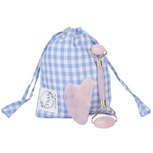 FSAS HEALTH AND BEAUTY - مدلك وجه وجوا شا للصحة والجمال للنساء، أدوات تدليك الوجه تساعد على تطبيق الأمصال وتخفيف التوتر، مصنوعة من كوارتز وردي أصلي 100٪ مستوحاة من تقنيات الجمال الآسيوية من اف اس ايه هيلث اند بيوتي