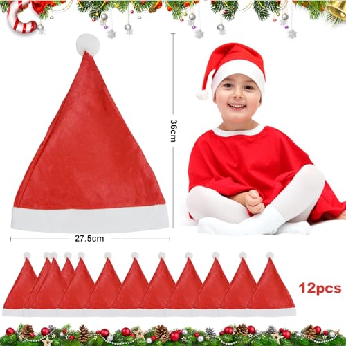 FTJKGH - Set of 12 Christmas Hats - Santa Hats for Adults and Children Hat Christmas Santa Hat for the Whole Family Ideal for Christmas Parties Company Parties Costumes and Festive Occasions