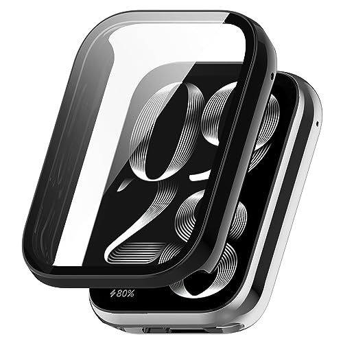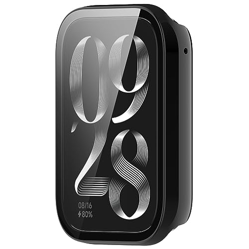 FTRONGRT - جراب متوافق مع ساعة شاومي سمارت باند 9 برو من فرونجرت، مصنوع من بولي كربونات + زجاج مقسى، جراب ساعة شامل مضاد للخدش متوافق مع ساعة شاومي سمارت باند 9 برو. أسود