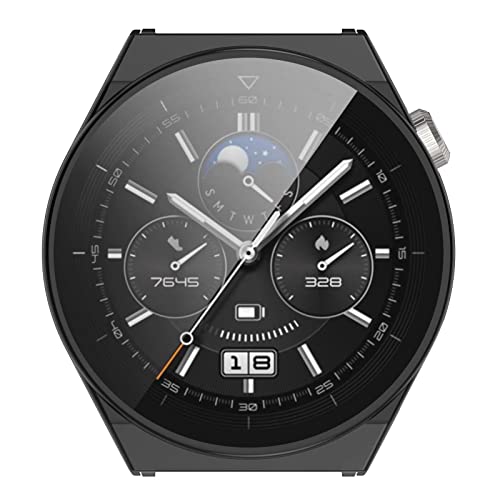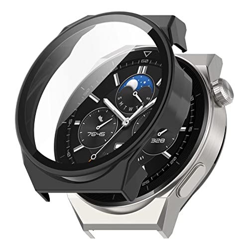 FTRONGRT - FTRONGRT Huawei Watch GT3 Pro 46mm Case, PC + Tempered Screen Film Combination, All Included, Shockproof, Case for Huawei Watch GT3 Pro 46mm Smartwatch.Black