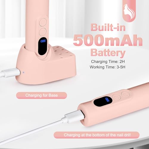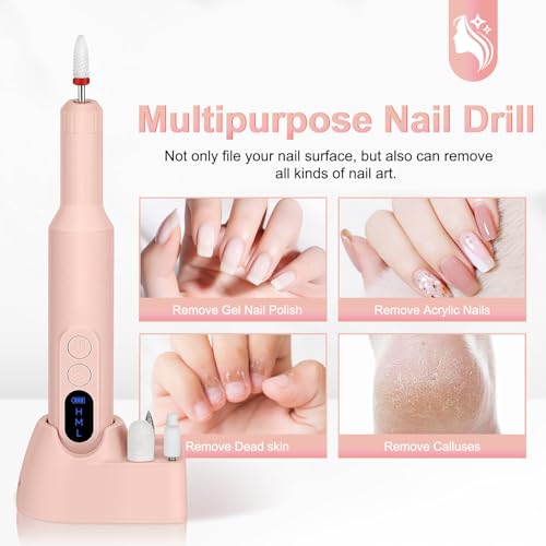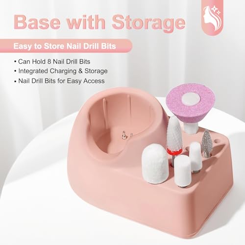 Ftrule - Cordless Electric Nail Drill, Portable Professional Rechargeable Efile Nail File Machine with Nail Drill Bits, Sanding Bands for Acrylic Gel Nails, Manicure Pedicure Polishing, Pink