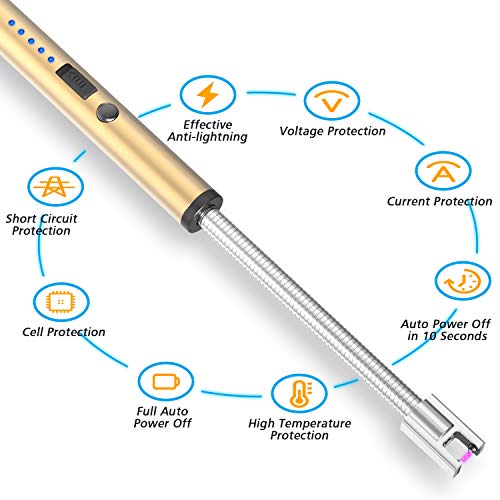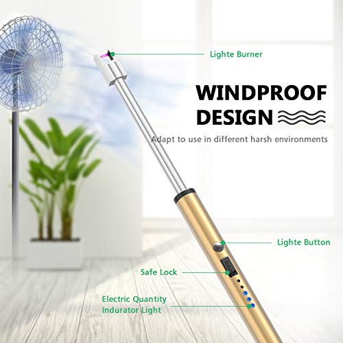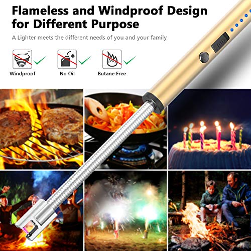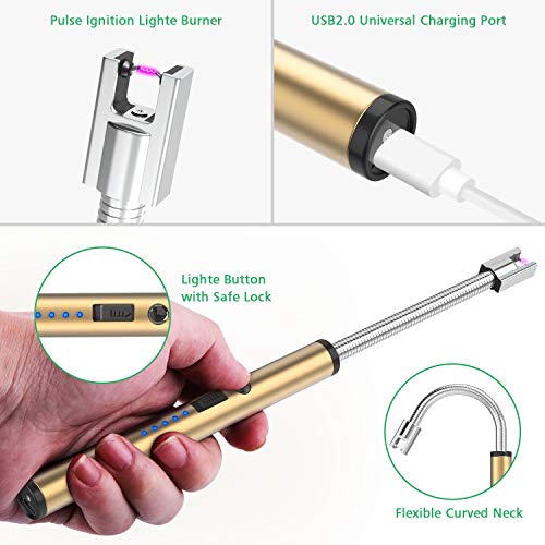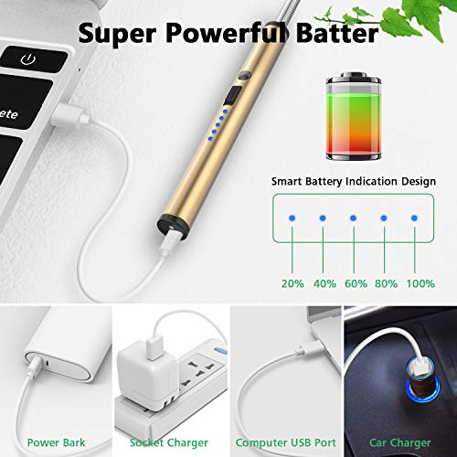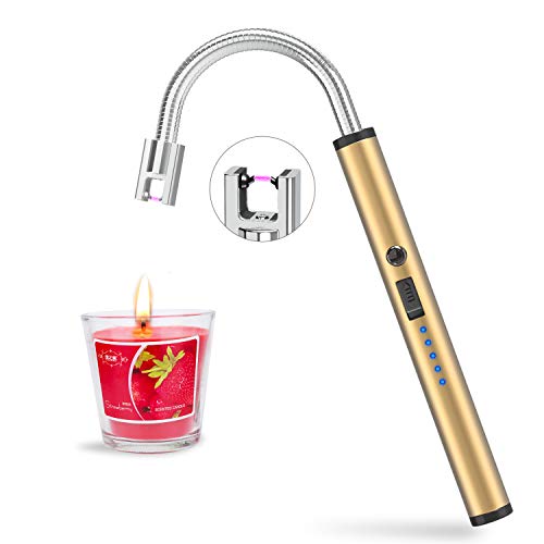 FUBARBAR FUNNY PLACE TO STAY - Candle Lighters, Long Flexible Wand USB Rechargeable Lighter Flameless Electric Arc Light for Birthday Outdoor Charcoal Camping Barbecue Cooking BBQs Grill Fireworks(Gold)
