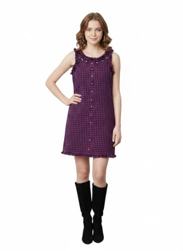 Generic - Fuchsia/Black Tweed Sleeveless Dress for Teen Girls & Women XS – Side Zipper, Party & Casual Outfit (Thomas & Splendor)