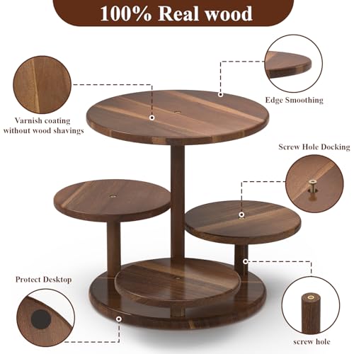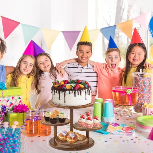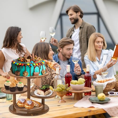- Quality Craftsmanship: Our natural round wooden cake stands are non-toxic, odorless and environmentally friendly. Spray painting process makes each pallet surface smooth and burr-free, no wood chips will fall off. Sturdy screws connect the tiers and base to ensure strength, stability and safety.
