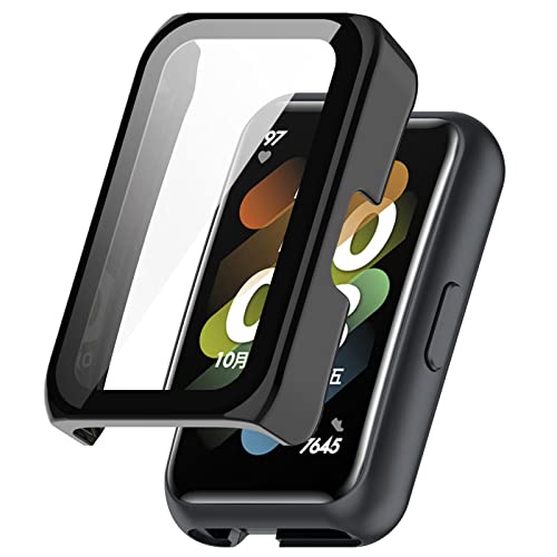 Generic - حافظة تغطية كاملة مع شاشة حماية متوافقة مع هواوي باند 7، ديسكول بي سي وغطاء حماية من الزجاج الحقيقي متوافق مع هواوي باند 7 ان اف سي