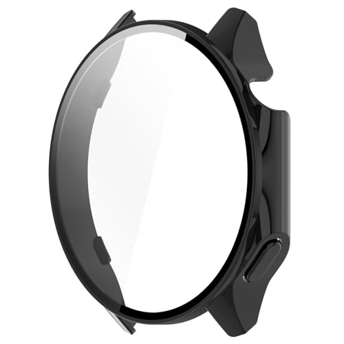 fashion mania - مجموعة جراب حماية بتغطية كاملة مع شاشة حماية مصنوعة من البولي كربونات والزجاج الحقيقي متوافقة مع ساعة ون بلس 2 (بولي كربونات/أسود)