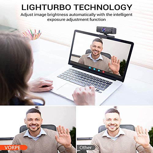 VORPE - Full HD Webcam with Microphone,1080P Web Camera with Autofocus,HD Light Correction,Live Streaming Camera for Video Calling,Online Classes,Works with Skype,Zoom, FaceTime, PC/Mac/Laptop, Black