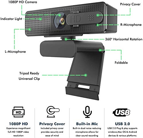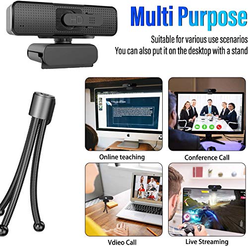 - ★ High Security And Flexibility:This USB webcam has a complete privacy shield and flexible mobile functions. It uses a ball joint to move up and down and rotate 360°. This is very convenient. It has a variety of mounting options, such as tripods, desktop mounts and universal clips suitable for laptops and LCD monitors.