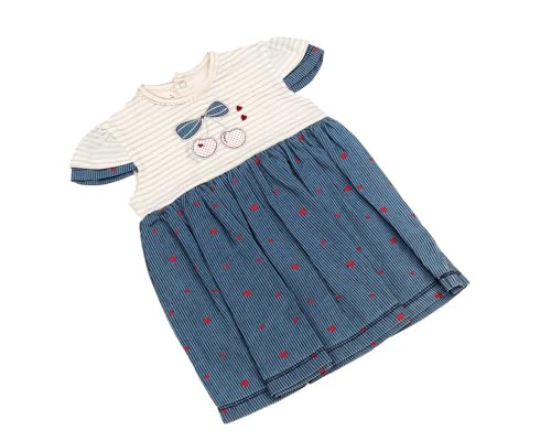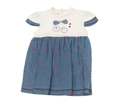 Generic - فستان قطن للبنات من فول مون مقاس 24 شهر - كحلي وابيض