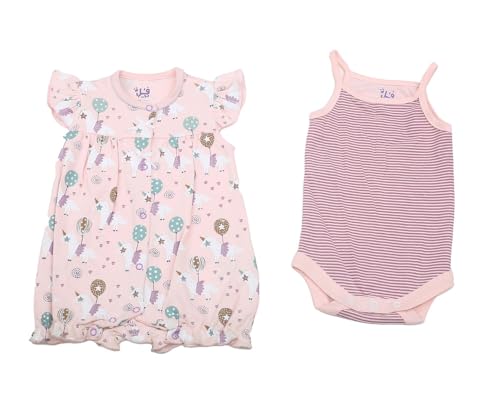 Generic - Full Moon Cotton Set Of 2 Pieces Jumpsuit Size 9 Months For Girls - Pink