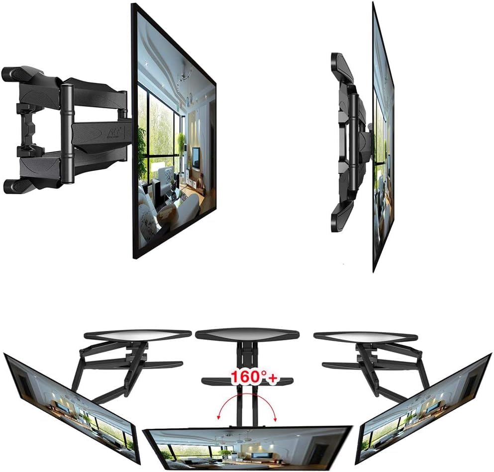 - حامل تلفزيون يثبت على الجدار كامل الحركة طراز (P5) لمعظم شاشات الكمبيوتر وتلفزيونات LED LCD 32-60 بوصة، قابل للتعديل والدوران، وزن يصل الى 80 رطل