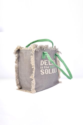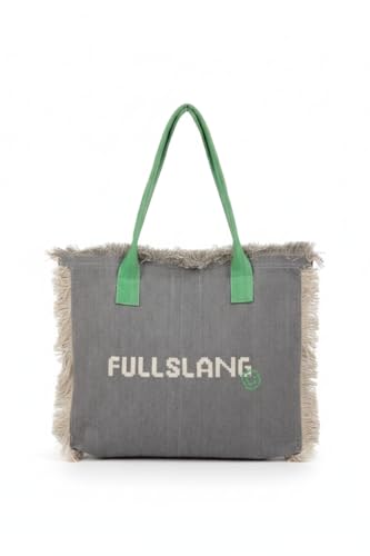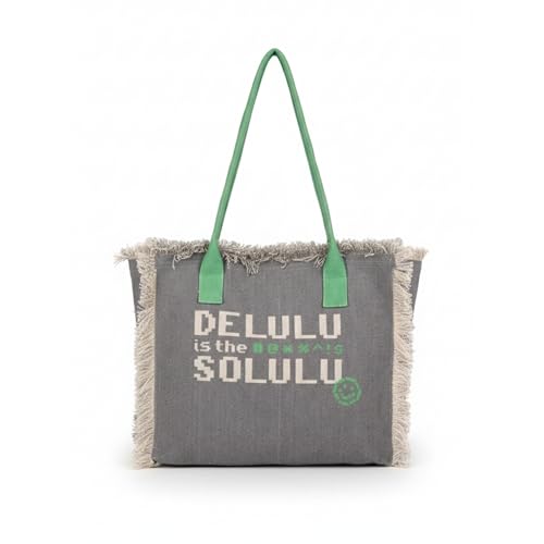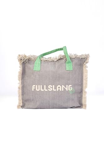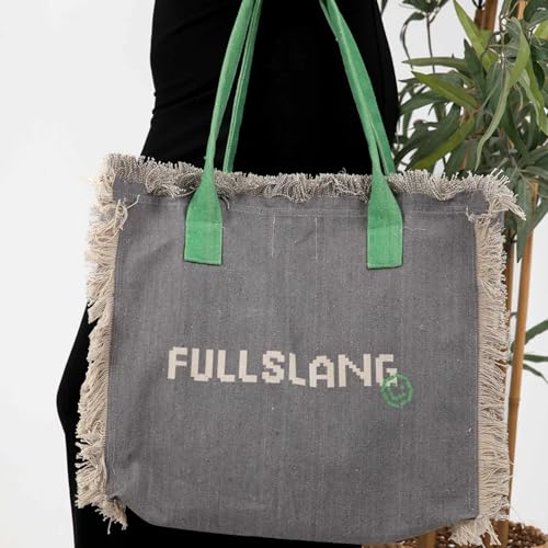 Full Slang - "The Delulu" Cluster Bag. Large Premium Canvas Tote with Fringe Detail & Green Handles. Spacious & Practical Storage for University, Travel & Daily Use (33x39x17cm)