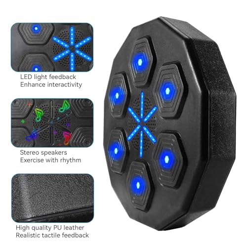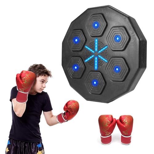 Fulluky - Music Boxing Machine, Music Electronic Boxing, Wall Target Boxing Machine, with 6 Lights and Bluetooth Sensor, Boxing Training Devices with Boxing Gloves