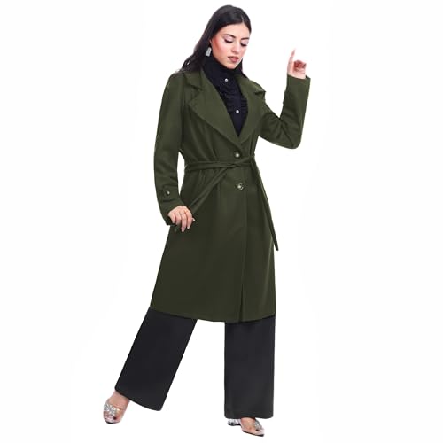 Smoky Egypt - معطف طويل مبطن بالكامل من مزيج الصوف مع حزام للنساء