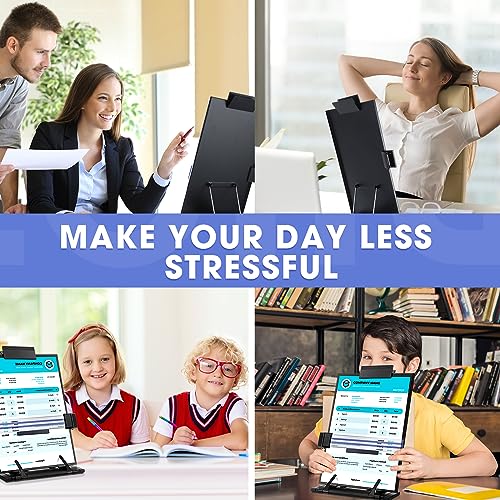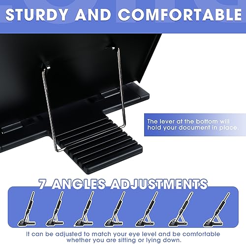 - Adjustable to Tilt: this paper stand has 7 grooves, enough to allow you to adjust this file holder to your comfortable eye level for 7 different angles for easy viewing; It can help maintain a neutral posture and reduce unnatural neck and eye movements, and no more stretching your neck