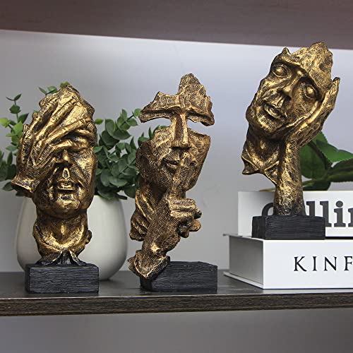 fumisee - 3 Pcs Thinker Statue, Silence is Gold Abstract Art Figurine, No Hear No See No Speak Modern Home Resin Sculptures Decorative Objects Desktop Decor (Gold)