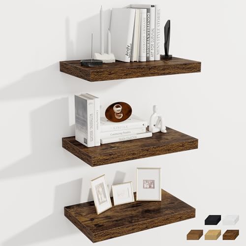- 【Versatile Ready-to-Gift Set】This complete 3-piece set of rustic brown floating shelves for wall offers endless possibilities. Use them as display shelves in the living room, storage shelves in the garage, or as decorative wood wall shelves in the bedroom. These versatile 16x12-inch wall shelves in classic rustic brown arrive gift-ready, making them the perfect present for any homeowner.