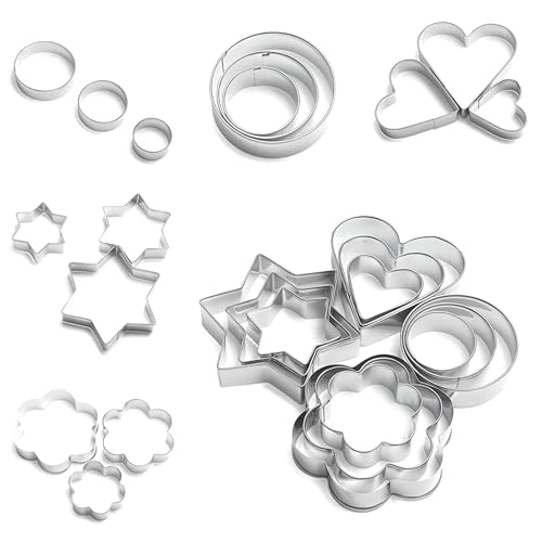 - This 12-piece set features 4 unique shapes: star, flower, circle, and heart. With 3 cutters of each shape, you can create various patterns in cookies, dough, fondant, and more. Each shape provides a different creative experience, making your baking even more fun.