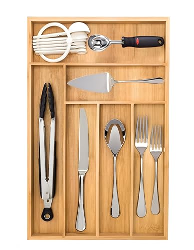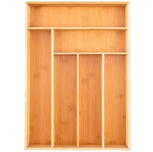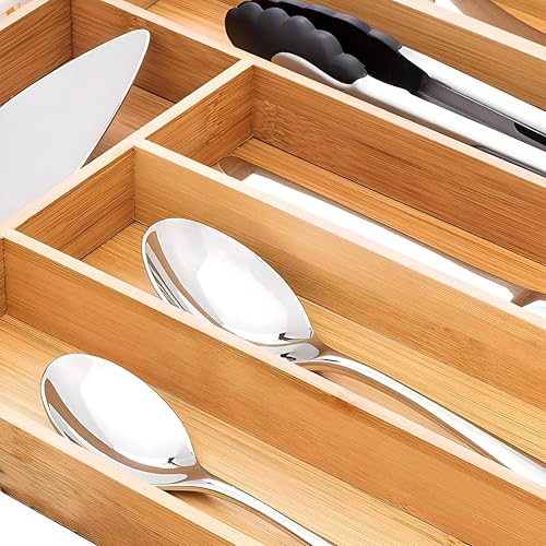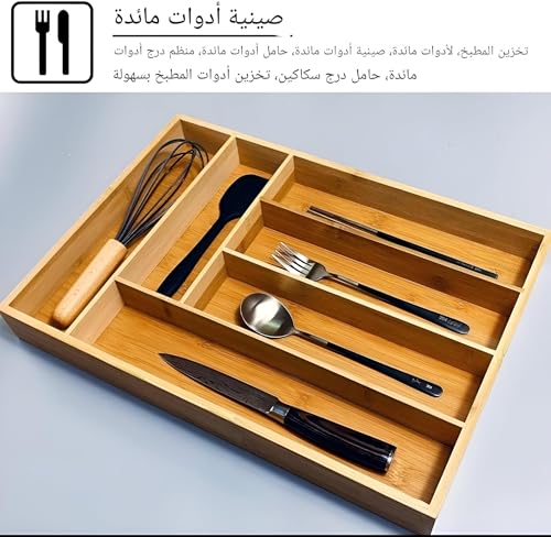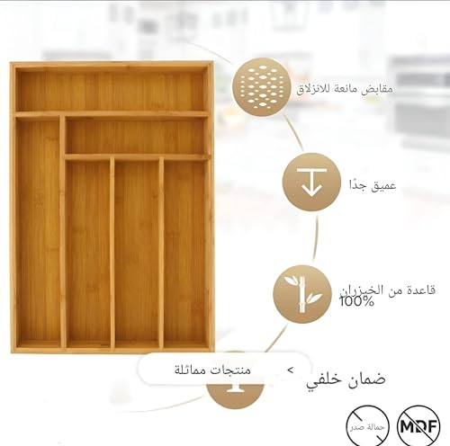 Generic - تخزين أدوات مائدة عملي، منظم من الخيزران صديق للبيئة مع 7 أقسام للأواني، سهل التنظيف ومتوافق مع الأدراج الكبيرة للاستفادة الفاعلة من المساحة، 42 × 35 سم