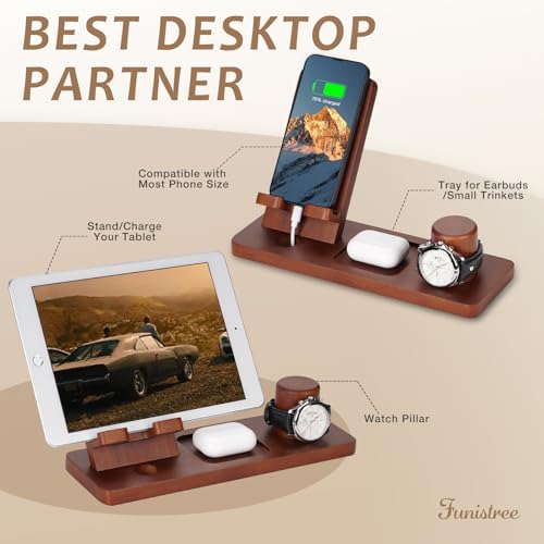 - Quality, Strong & Sturdy: Funistree phone docking station for men is handcrafted by only high-quality solid wood with good strength and durability. The smooth polished surface, covered with a long-lasting finish, provides a comfortable touch, making it a best desk accessories for men