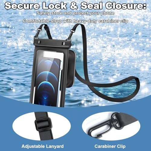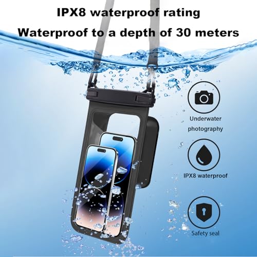- 【Fits Most Cell Phones】- The water proof phone pouch iphone measures 8.5 inches and fits most cell phones with or without a case, providing double insurance for your phone. Fits large devices up to 7.5 inches, such as iPhone 16 15 14 13 12 11 XS XR X Pro Max Plus Mini, S24 S23 S22 Ultra and more.