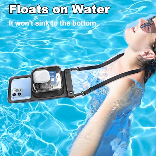 - 【Designed for Floating】- The waterproof case for cell phone has an extra large back compartment space to provide strong buoyancy, which allows your hand to float on the water surface, you easily know if your cell phone is safe and secure. It allows you to keep a close eye on important notifications on your device and reduces the risk of your phone sinking into the water.