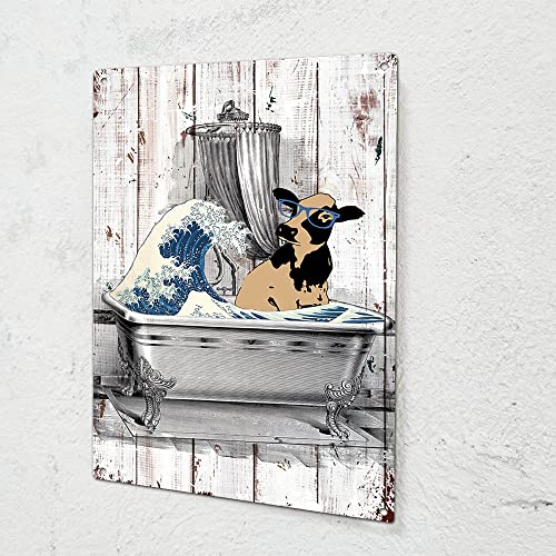 akeke - Funny Bathroom Signs Wall Decor, Cow Minimalist Wall Art Bathroom Prints, Fun Guest Bathroom Metal Tin Sign Wall Art Decor, Funny Bathroom Gifts for Women, Funny Message Saying Cafe Bar Bathroom Decor